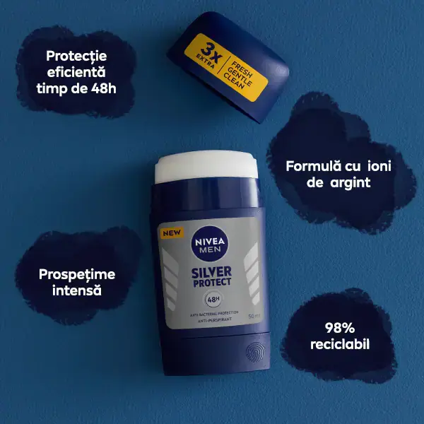 استیک صابونی ضدتعریق مردانه نیوا مدل Silver Protect یک محصول پیشرفته و موثر برای محافظت از بدن در برابر تعریق و بوی نامطبوع است. این محصول از سری Silver Protect برند معتبر NIVEA بوده و بهواسطه ترکیبات نقره فعال، باکتریهای مولد بوی نامطبوع را از بین برده و تا ۴۸ ساعت حس تازگی و خشکی را برای پوست زیر بغل فراهم میکند. طراحی صابونی این محصول باعث جذب سریع و راحتتر آن بر روی پوست میشود، بدون اینکه رد سفیدی بر جای بگذارد.