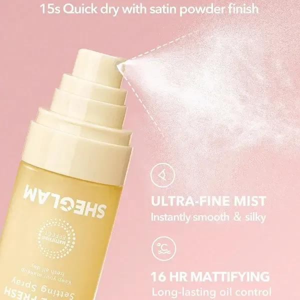 ‘- جلوه مات و بدون برق – تثبیتکننده آرایش تا چندین ساعت – فاقد پارابن، گلوتن، سیلیکون و تالک – مناسب برای پوست چرب و مختلط – وگان و Cruelty-Free – خشکشونده سریع با مهپاش نرم