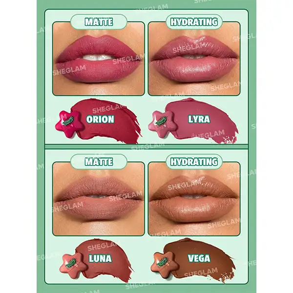 4 عدد رژ لب در رنگهای متنوع از تناژهای نود تا صورتی فرمولاسیون کرمی و نرم برای حس راحتی روی لبها رنگدانههای غنی با پوشش بالا و جلوهای زیبا بستهبندی جذاب و فانتزی ستارهای شکل مناسب برای حمل آسان به دلیل سایز کوچک ماندگاری مناسب بدون ایجاد خشکی روی لبها بافت سبک و بدون احساس چسبندگی