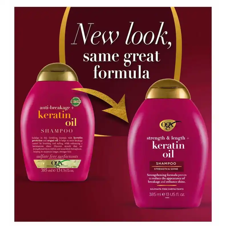 شامپو کراتین اویل او جی ایکس (OGX Keratin Oil Shampoo) ترکیبی از کراتین و روغن آرگان است که بهطور تخصصی برای موهای شکننده، آسیبدیده و ضعیف طراحی شده. این شامپو با تقویت ساختار داخلی تار مو، از شکستگی و موخوره جلوگیری کرده و لطافت و درخشندگی طبیعی را بازمیگرداند. فرمولاسیون سبک آن بدون ایجاد سنگینی، موها را تمیز، نرم و براق کرده و حس لطافت ابریشمی به مو میبخشد.