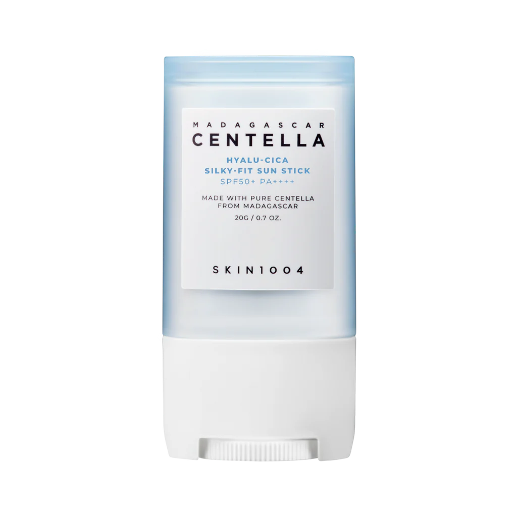 استیک ضدآفتاب اسکین 1004 مدل Hyalu-Cica Silky-Fit Sun Stick SPF50+ PA++++ یکی از محبوبترین محصولات مراقبت از پوست برند کرهای SKIN1004 است. این استیک با ترکیبی از هیالورونیک اسید و عصاره سنتلا آسیاتیکا از جزیره ماداگاسکار، محافظت قوی در برابر اشعههای مضر آفتاب فراهم کرده و در عین حال رطوبت پوست را حفظ میکند. بافت ابریشمی و سبک این ضدآفتاب باعث میشود بهراحتی روی پوست بلغزد، بدون سفیدک یا چربی باقی بگذارد و جلوهای طبیعی و مات ایجاد کند.