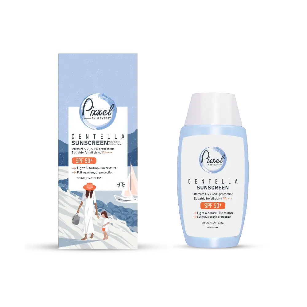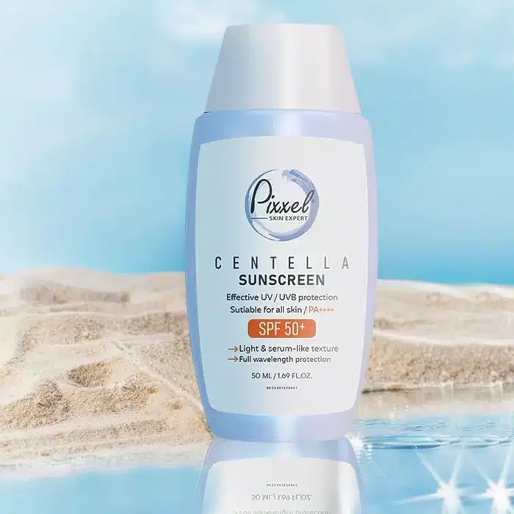 کرم ضد آفتاب Pixxel Centella Sunscreen SPF50+ محصولی سبک و بدون چربی است که با بافت سرمی خود از پوست در برابر اشعههای مضر UVA و UVB محافظت میکند. این کرم حاوی عصاره گیاه سنتلا آسیاتیکا (Centella Asiatica) بوده و علاوه بر محافظت در برابر آفتاب، خاصیت ترمیمکنندگی و تسکین پوست دارد. فرمولاسیون ملایم آن برای انواع پوست حتی پوستهای حساس مناسب است و احساس سبکی و لطافت را روی پوست باقی میگذارد.
