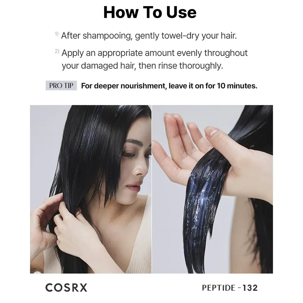 بازسازی عمیق موهای آسیبدیده با فناوری PEPTIDE-132™. افزایش نرمی، لطافت و انعطافپذیری مو. کاهش وز و موخوره، ایجاد حالت ابریشمی طبیعی. تغذیه و آبرسانی با روغنهای مغذی و هیالورونیک اسید. تقویت ساختار مو و محافظت از تارها در برابر حرارت و آسیب. مناسب موهای رنگشده، دکلرهشده و آسیبدیده. بدون سولفات، پارابن، سیلیکون یا الکل خشککننده. بافت کرمی سبک و جذب سریع، مراقبت حرفهای در خانه. ۸۸۰۹۵۹۸۴۵۷۳۴۸