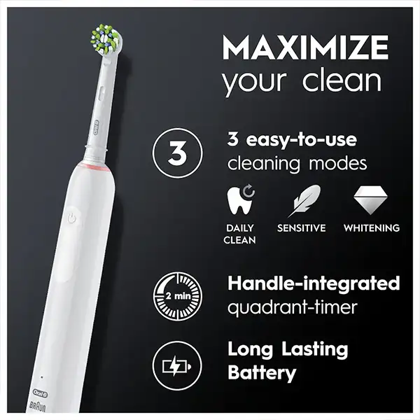 مجهز به سنسور فشار برای محافظت از لثهها در برابر فشار بیشازحد دارای ۳ حالت تمیزکننده: پاکسازی روزانه، ملایم، و سفیدکننده دارای تایمر حرفهای (Pro-Timer) برای مسواکزدن دقیق ۲ دقیقهای بهرهمندی از فناوری پاکسازی سهبعدی (3D Cleaning Technology) – ترکیبی از نوسان، چرخش و پالس همراه با جعبه حمل مسافرتی (Travel Case) طراحی ارگونومیک با رنگ صورتی و دستهی خوشدست سازگار با انواع سریهای مسواک Oral-B ساخت برند معتبر Braun – اورال-بی مناسب برای تمیز کردن کامل دندانها، لثهها و خطوط لثه