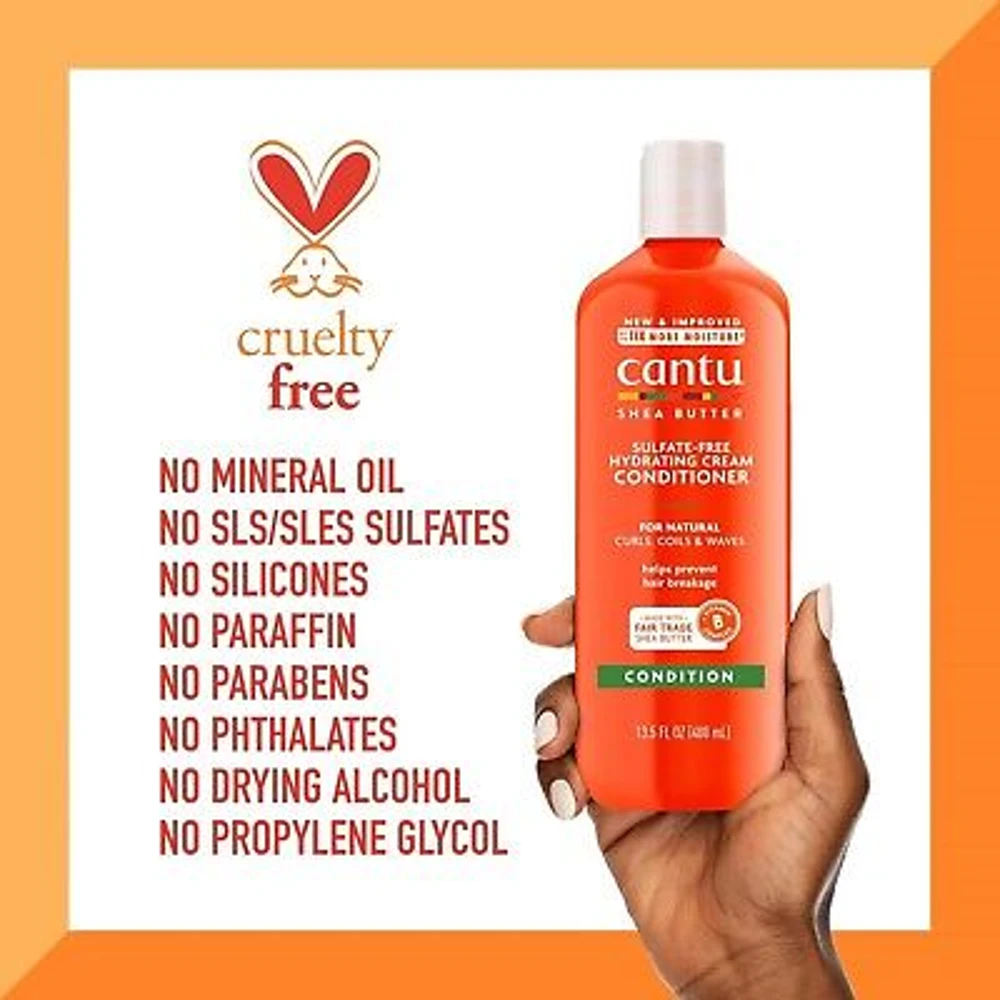 نرمکننده آبرسان کرمی بدون سولفات کانتو (Cantu Shea Butter Sulfate-Free Hydrating Cream Conditioner) یک نرمکننده مغذی و مرطوبکننده مخصوص موهای فر، مجعد و خشک است. فرمولاسیون جدید آن تا 11 برابر رطوبت بیشتری به موها میبخشد و به ترمیم و جلوگیری از شکنندگی مو کمک میکند. این محصول با کره شیباتر طبیعی ساخته شده و بدون سولفات، سیلیکون و پارافین است. نتیجه استفاده از آن، موهایی نرم، درخشان و سالمتر خواهد بود.