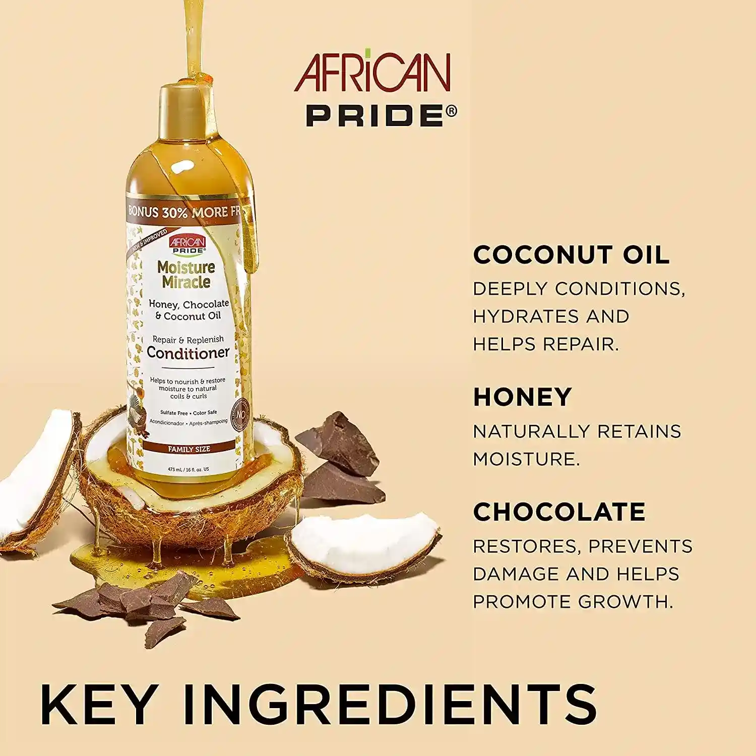 نرمکننده موی افریکن پراید مدل Moisture Miracle حاوی عسل، شکلات و روغن نارگیل