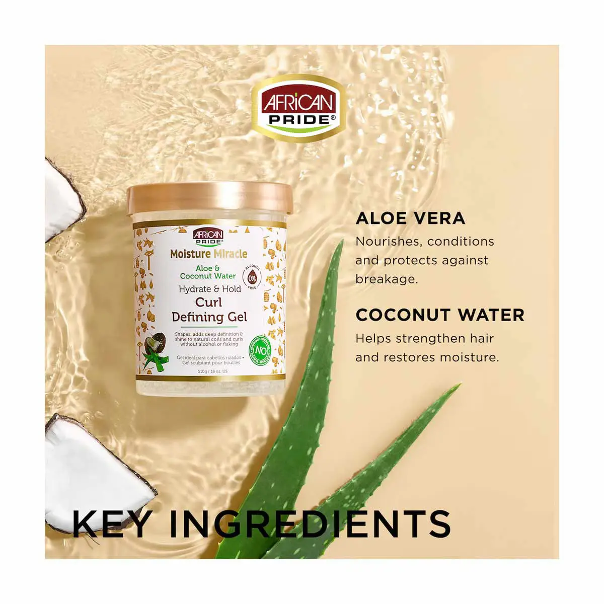 ژل تعریفکننده و نگهدارنده فر آفریکن پراید (African Pride Moisture Miracle Curl Defining Gel) با ترکیب ژل آلوئهورا و آب نارگیل طراحی شده تا به موهای فر و مجعد شکل و حالت طبیعی دهد. این ژل بدون ایجاد پوستهپوسته شدن یا خشکی، رطوبت را در مو حفظ کرده و درخشندگی و لطافت طبیعی را به موها بازمیگرداند.