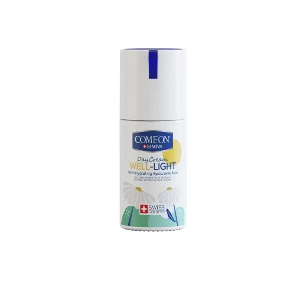 کرم روز کامان مدل Well-Light با فرمولاسیون سوئیسی و ترکیبات آبرسان قوی، در طول روز پوست را مرطوب، نرم و درخشان نگه میدارد. این کرم سبک و زودجذب بوده و با هیالورونیک اسید و عصاره بابونه، از پوست در برابر خشکی و عوامل محیطی محافظت میکند.