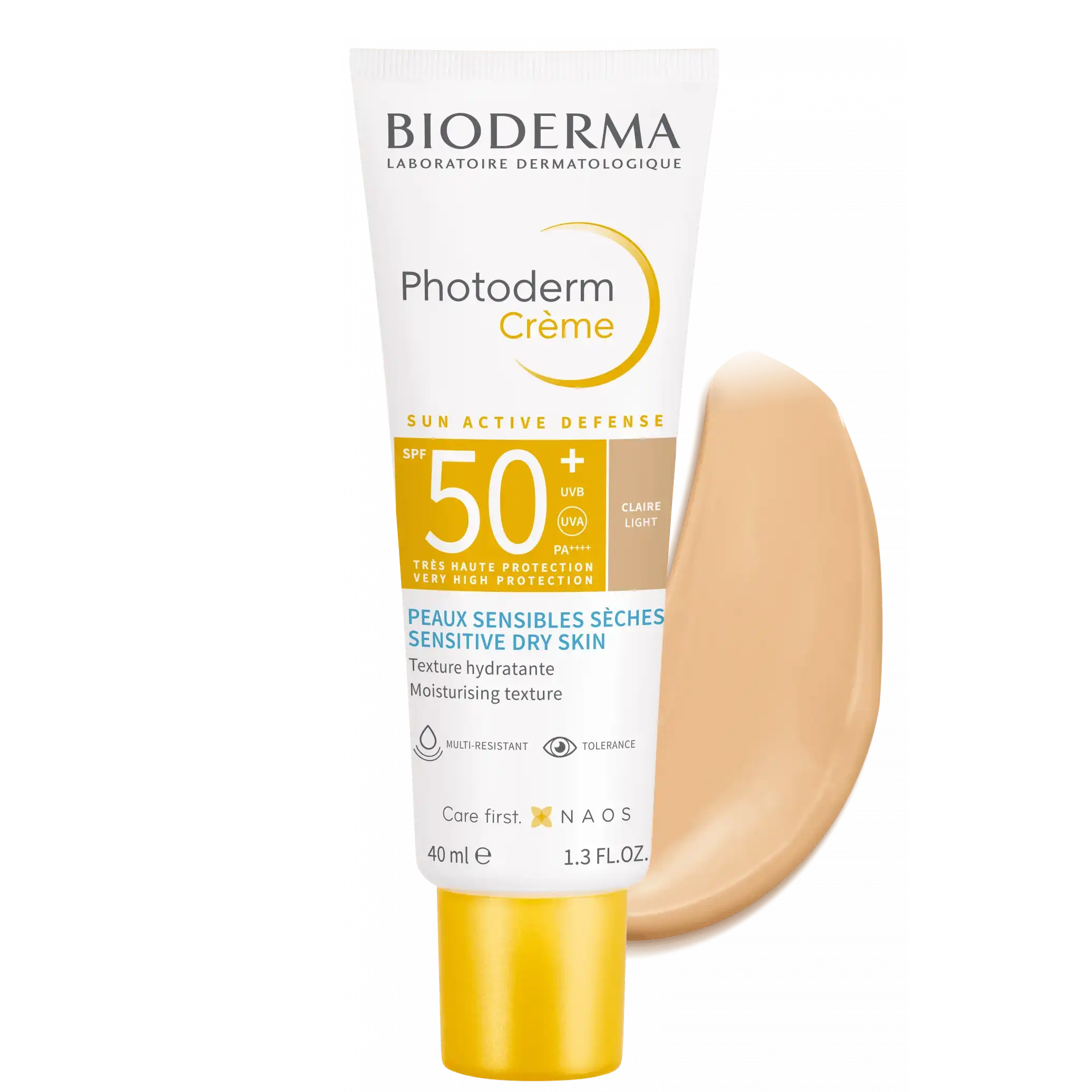 SPF 50+ با فیلترهای UVA/UVB و PA++++: محافظت قوی در برابر آفتابسوختگی و پیری زودرس Sun Active Defense: کمک به تقویت سد دفاعی طبیعی پوست در برابر نور خورشید مخصوص پوستهای حساس و خشک: فرمولاسیون ملایم و آبرسان برای جلوگیری از خشکی بافت مرطوبکننده (Moisturising Texture): حفظ رطوبت پوست و جلوگیری از احساس کشیدگی رنگ لایت (Clair Light): پوششی ملایم و طبیعی برای یکدست شدن رنگ پوست فاقد چربی سنگین و غیر کومدونزا: از مسدود شدن منافذ جلوگیری کرده و باعث جوش نمیشود مقاوم در برابر آب: برای استفاده روزمره یا فعالیتهای بیرون از منزل مناسب است حجم ۴۰ میلیلیتر